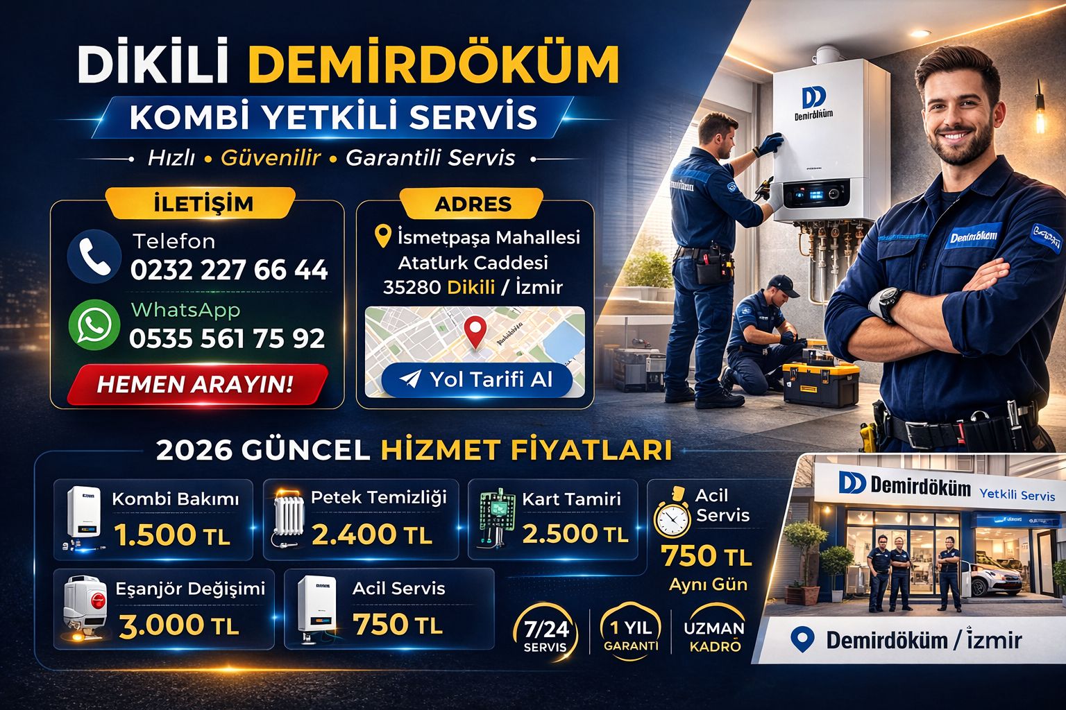 Dikili Demirdöküm kombi servisi olarak, uzman ekibimizle hızlı arıza tamiri ve profesyonel periyodik bakım hizmetleri sunuyoruz. Güvenilir ve uygun fiyatlı çözümlerimizle cihazınızın ömrünü uzatmak için 7/24 yanınızdayız.